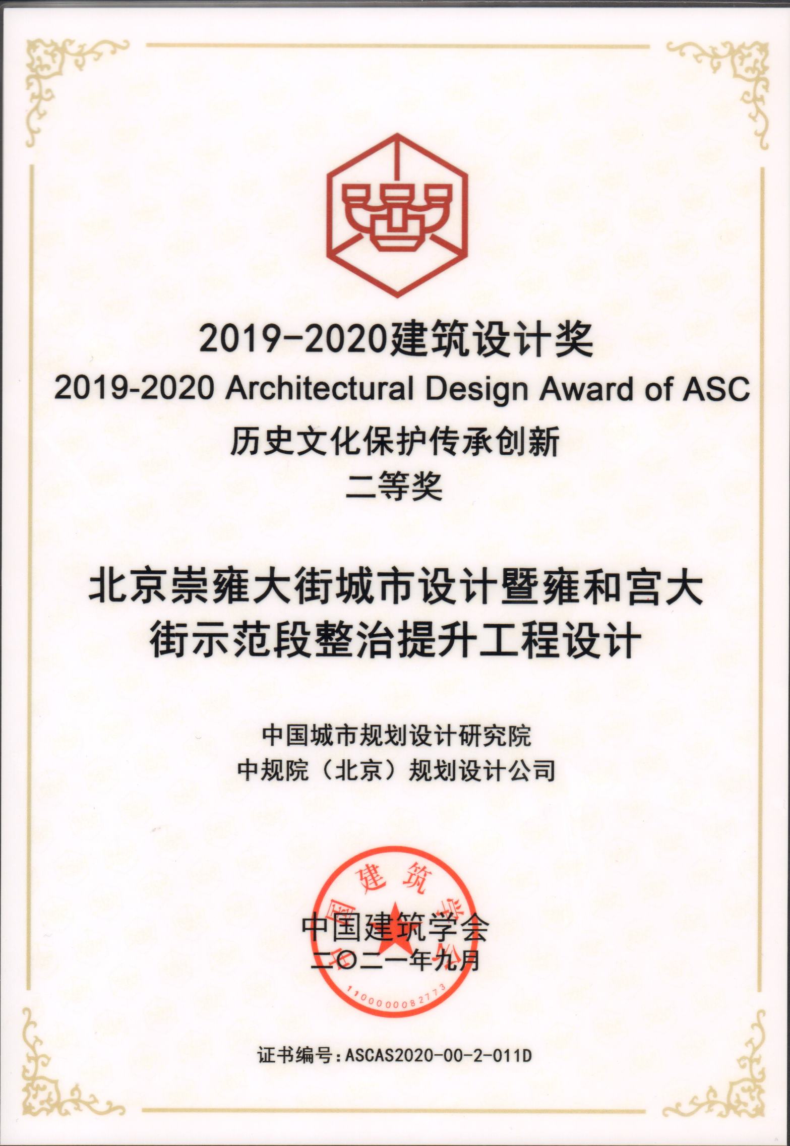 中国建筑学会2019-2020建筑设计奖二等奖-北京崇雍大街城市设计暨雍和宫大街示范段整治提升工程设计
