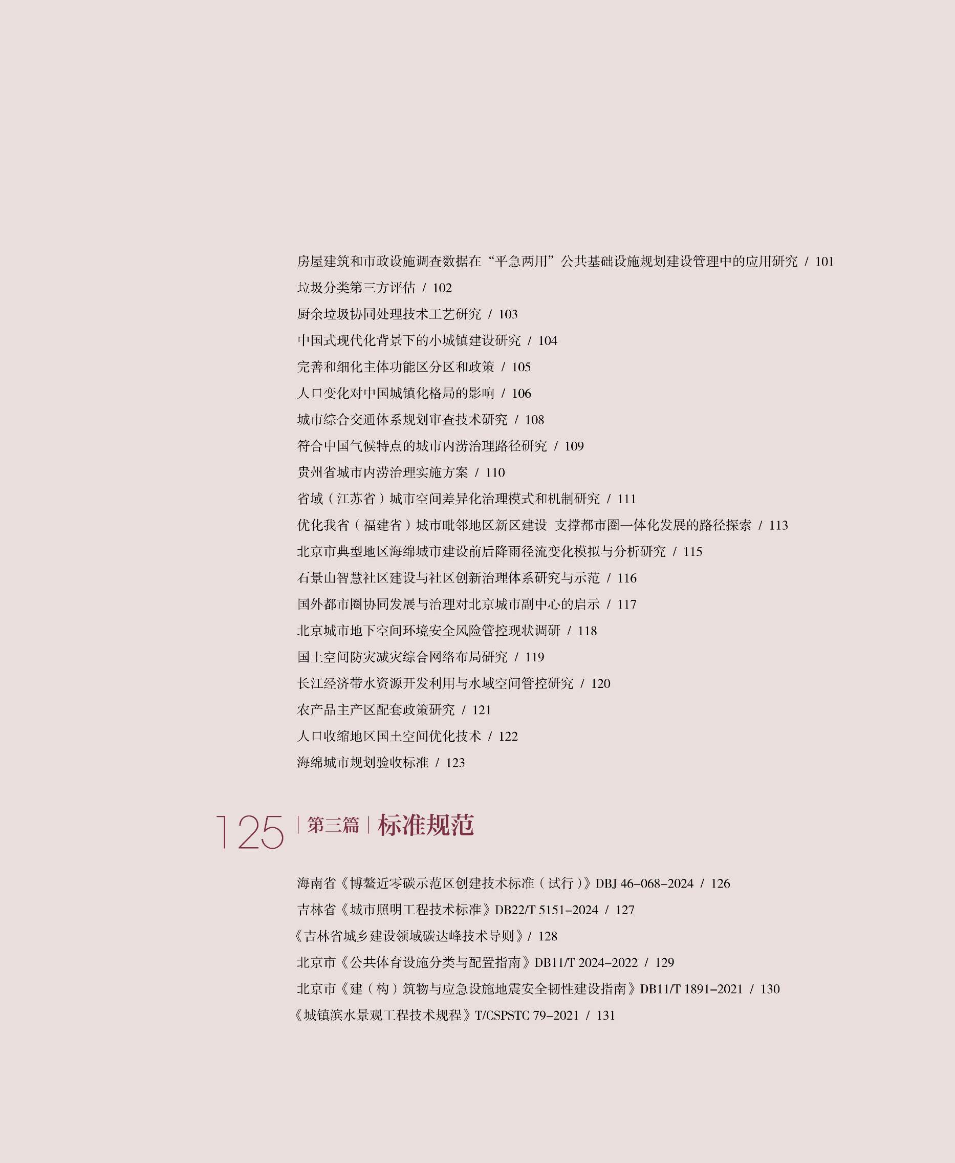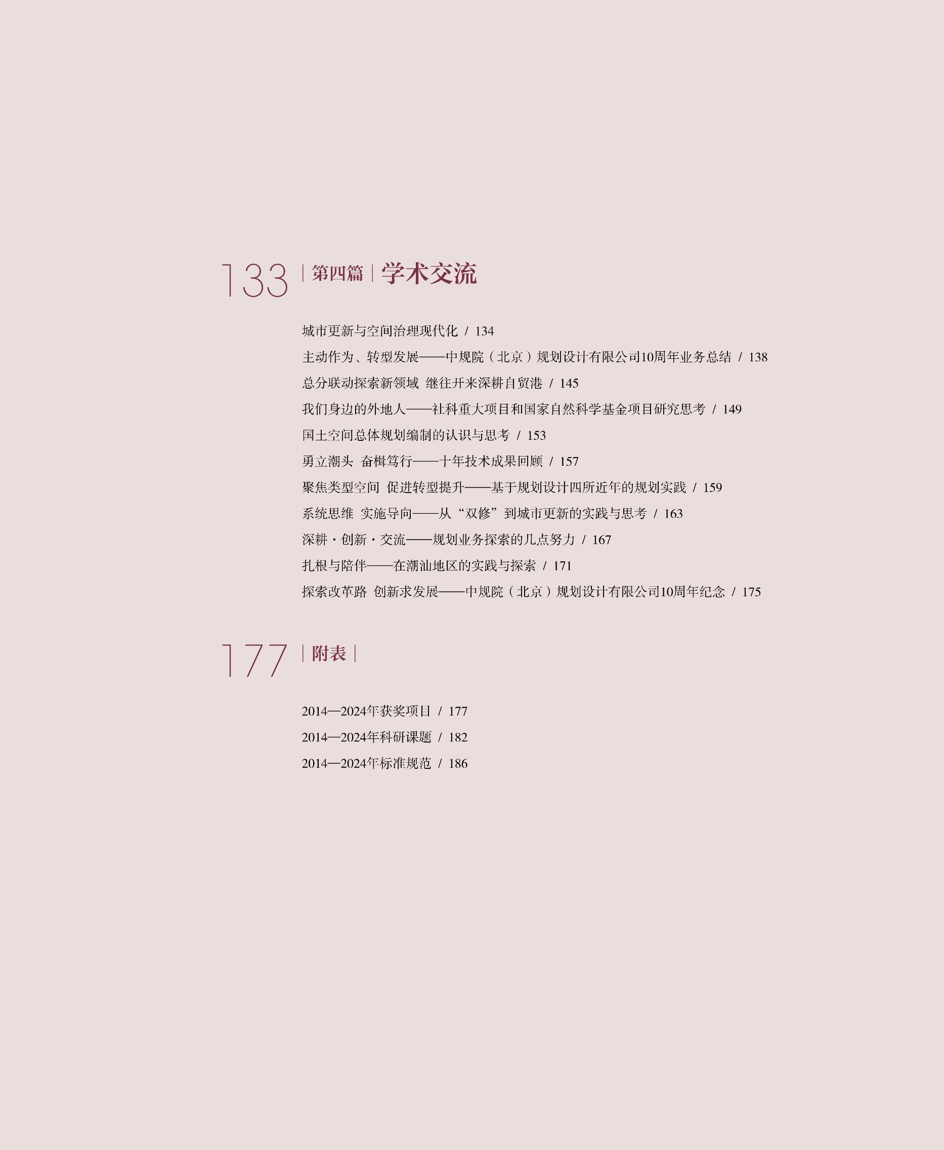 成果集内容:一、具有重要影响力或获奖规划设计项目,涵盖项目背景、主要构思、规划内容、规划特色、规划实施等内容;二、国家立项、部委委托、地方委托的科研项目,涵盖研究背景、主要内容、关键技术、经济社会效益等内容;三、主编或参编的标准规范,涵盖标准级别、编制目的、适用范围、主要内容等内容;四、北京公司学术交流会报告;五、获奖项目名录(2014-2024)等,本书对当前我国规划行业所面对的新问题和新挑战提出了具有针对性和指导性的解决方案,可为规划设计和规划管理岗位从业人员提供第一手的技术资料,从而为他们提供有益的经验和借鉴。