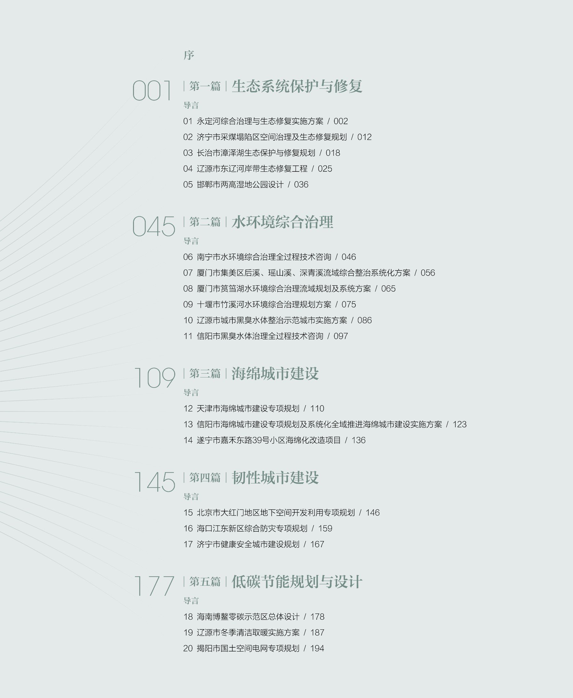 本书汇集了中规院(北京)规划设计公司自创建以来,业务主创团队完成的生态市政领域优秀规划设计作品。内容涉及的领域包括:生态系统保护与修复,水环境治理,生态修复工程,海绵城市建设,综合防灾减灾,低碳、能源。计划分为生态、韧性、低碳三个篇章,全方位展示公司自成立以来在生态市政领域进行的探索。这些规划设计作品代表着公司在时代变革的大背景下,积极开拓、谋求创新发展的最高水准。作品集对当前我国规划行业新时代所面对的新问题和新挑战提出了具有针对性和指导性的解决方案,可为规划设计和规划管理岗位从业人员提供第一手的技术资料,从而为他们提供有益的经验和借鉴。