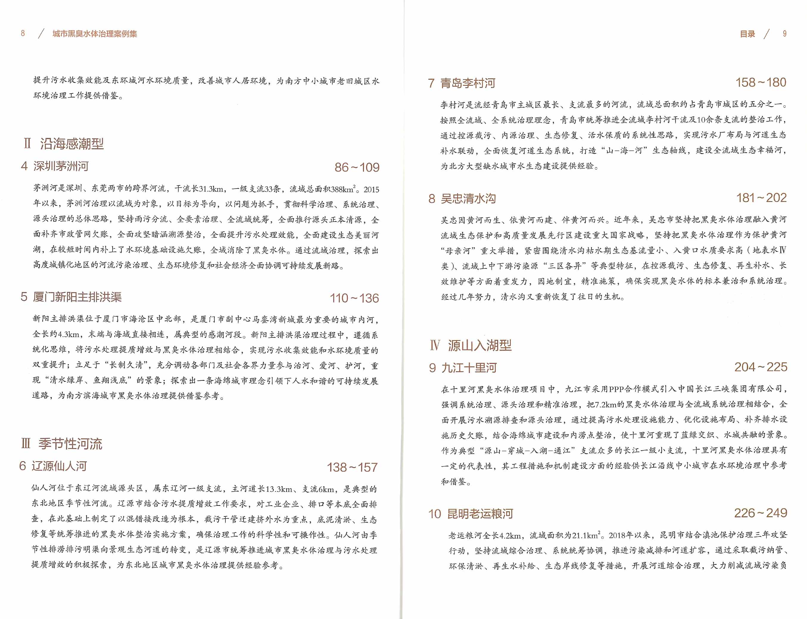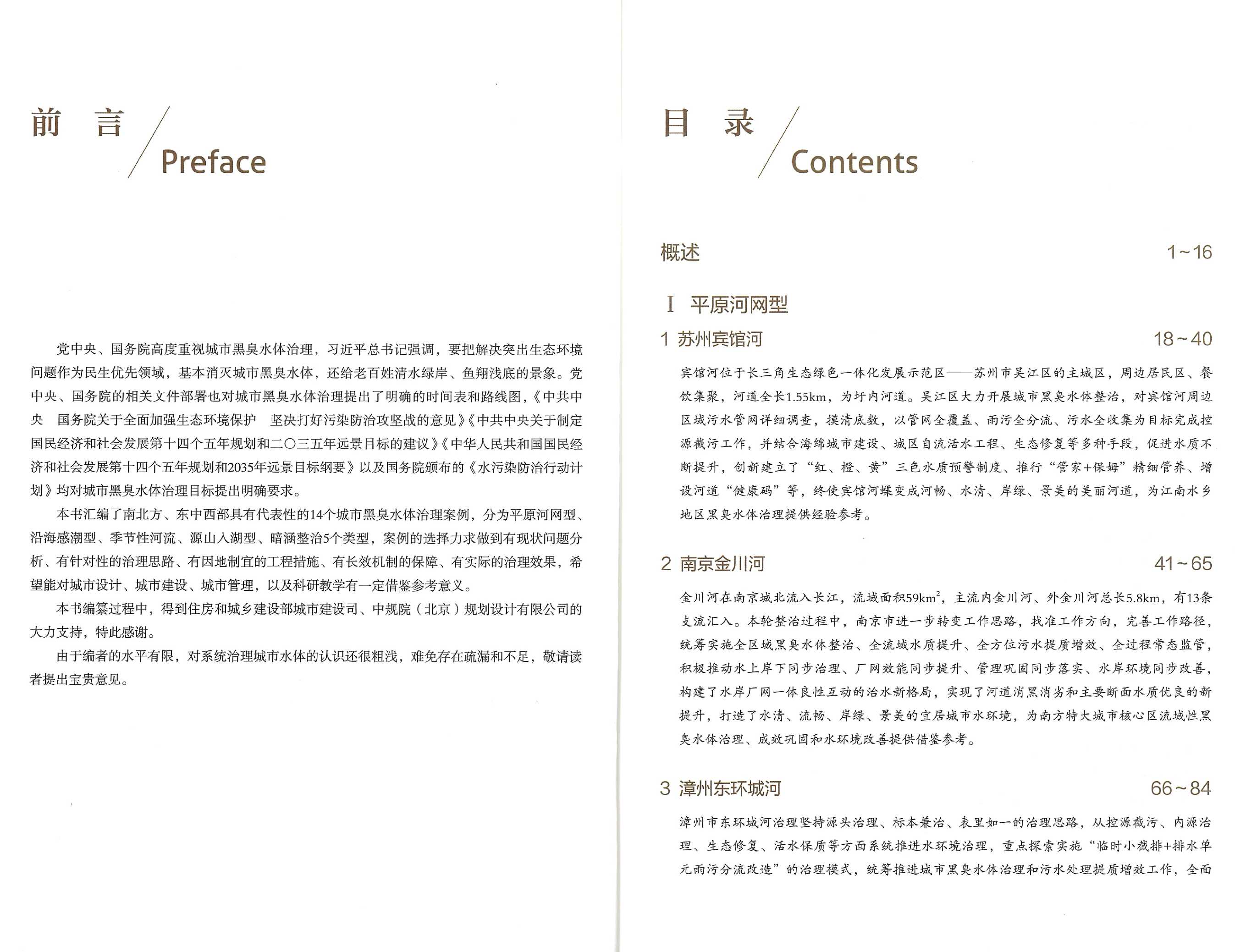 城市黑臭水体治理是推进绿色发展的必然要求,也是推动城市更新的重要内容。本书选取苏州、南京、漳州、深圳、厦门、辽源、青岛、吴忠、九江、昆明、宜春、广州、南宁、福州14个城市的黑臭水体治理案例,旨在总结城市治水经验,提升城市宜居性,提高城市发展持续性,推动实现蓝绿交织、水城共融。