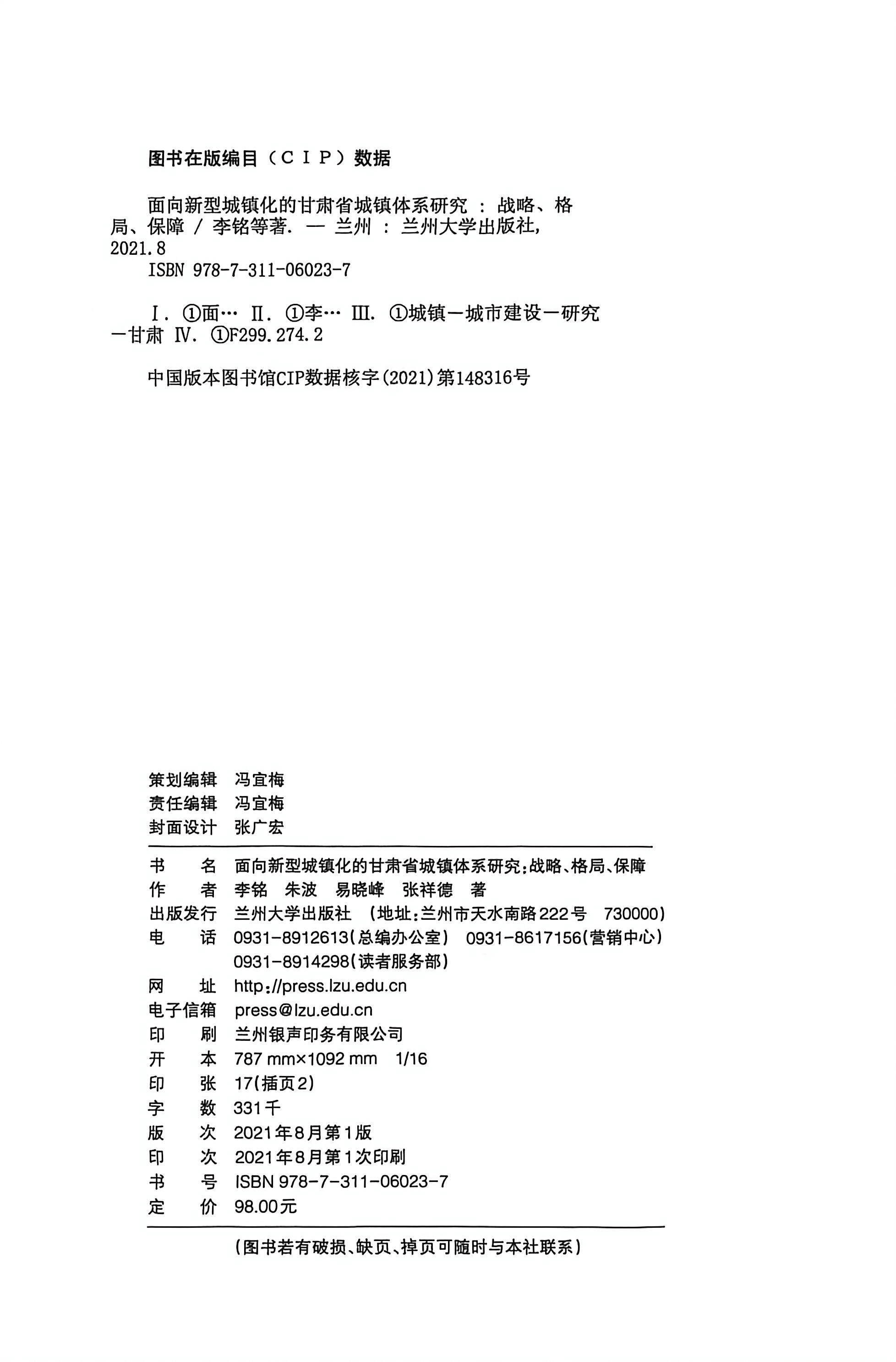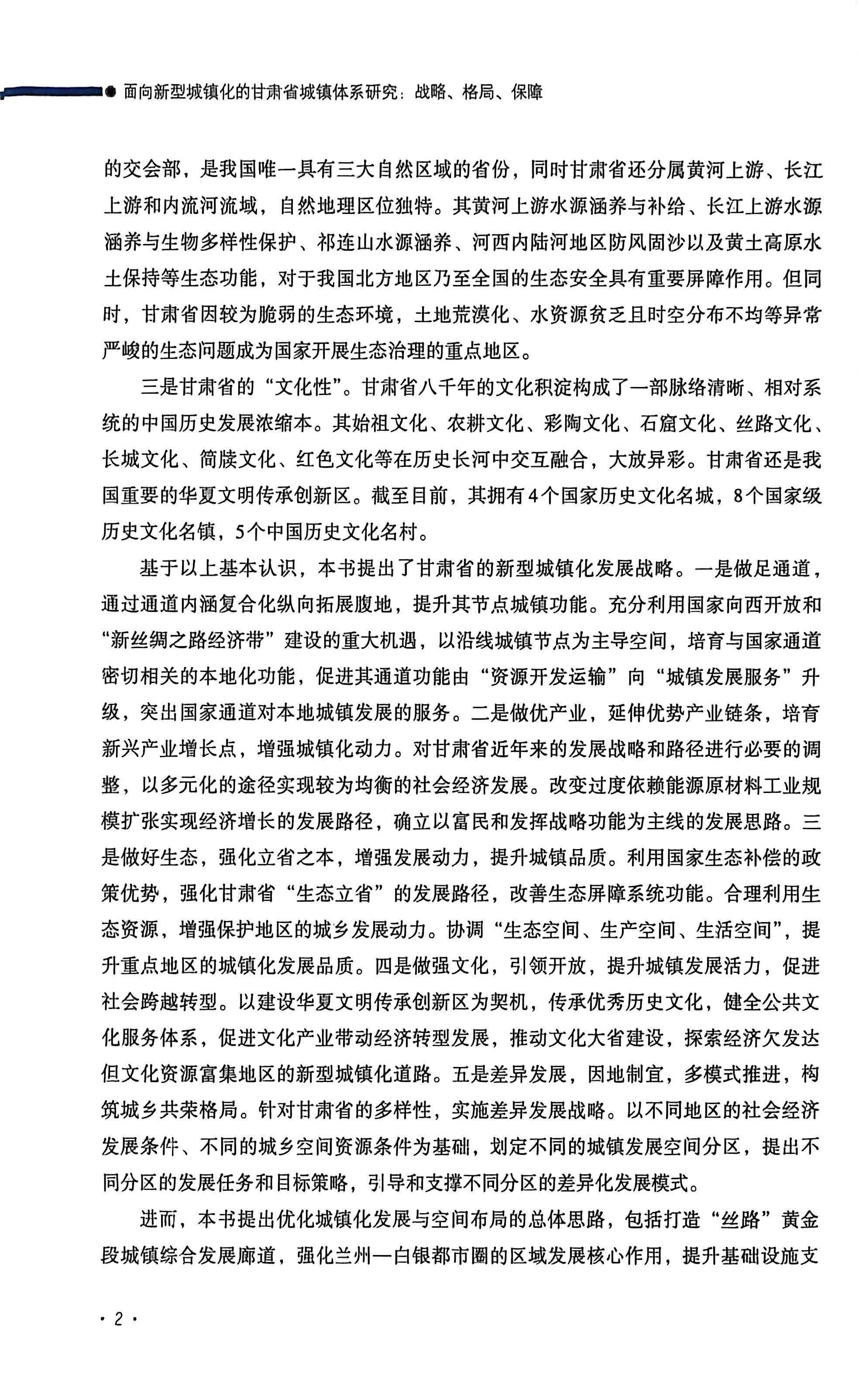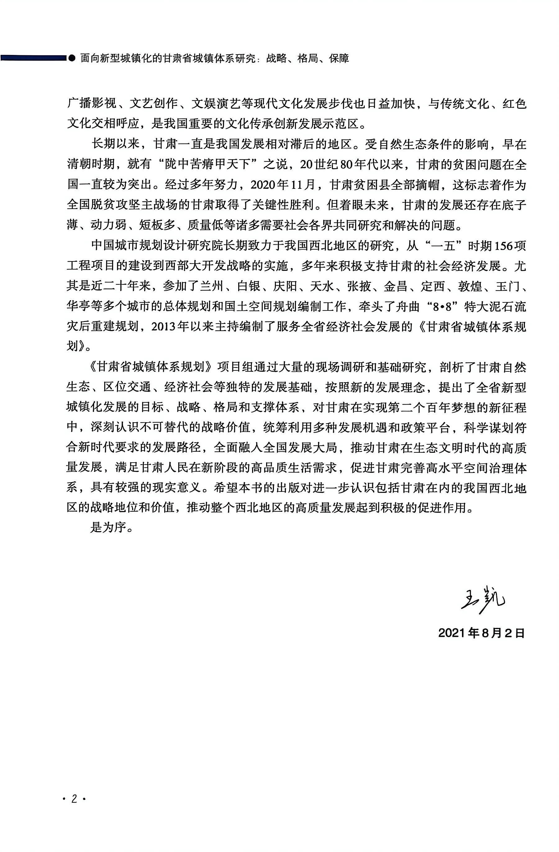 《甘肃省城镇体系规划》项目组通过大量的现场调研和基础研究,剖析了甘肃自然生态、区位交通、经济社会等独特的发展基础,按照新的发展理念,提出了全省新型城镇化发展的目标、战略、格局和支撑体系,对甘肃在实现第二个百年梦想的新征程中,深刻认识不可替代的战略价值,统筹利用多种发展机遇和政策平台,科学谋划合新时代要求的发展路径,全面融人全国发展大局,推动甘肃在生态文明时代的高质量发展,满足甘肃人民在新阶段的高品质生活需求,促进甘肃完善高水平空间治理体系,具有较强的现实意义。希望本书的出版对进一步认识包括甘肃在内的我国西北地区的战略地位和价值,推动整个西北地区的高质量发展起到积极的促进作用。