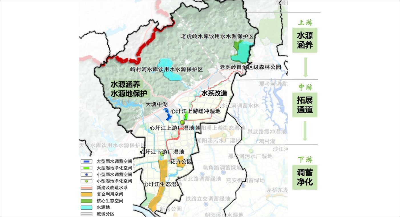 项目突破传统工程思维,实现三大创新:一是完善了生态基础设施概念体系,将其定义为自然要素与生态化灰色设施共同构成的综合网络,提升了城市系统的“韧性”与“弹性”。二是创新了功能导向的布局技术路线,确立“摸清本底—辨识问题—布局空间—整合空间”的规划方法,将生态设施细分为生态网络、水资源供给、内涝治理、水环境治理四大功能系统,实现“一空间多功能”。三是集成运用多模型提升科学性,通过GIS、HEC-RAS、Infoworks ICM等模型,精准识别生态空间和风险区域,为规划选址提供了量化支撑。