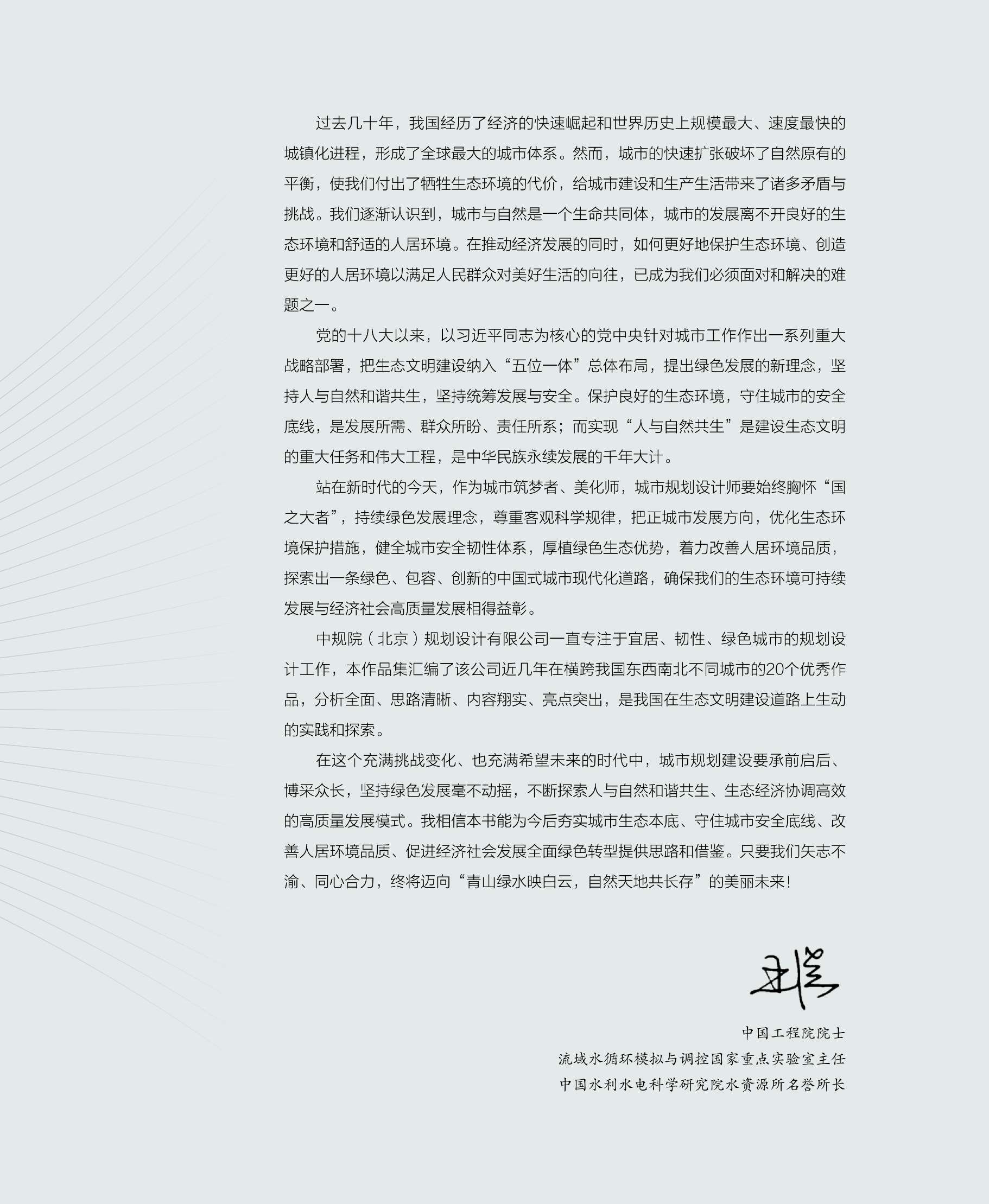 本书汇集了中规院(北京)规划设计公司自创建以来,业务主创团队完成的生态市政领域优秀规划设计作品。内容涉及的领域包括:生态系统保护与修复,水环境治理,生态修复工程,海绵城市建设,综合防灾减灾,低碳、能源。计划分为生态、韧性、低碳三个篇章,全方位展示公司自成立以来在生态市政领域进行的探索。这些规划设计作品代表着公司在时代变革的大背景下,积极开拓、谋求创新发展的最高水准。作品集对当前我国规划行业新时代所面对的新问题和新挑战提出了具有针对性和指导性的解决方案,可为规划设计和规划管理岗位从业人员提供第一手的技术资料,从而为他们提供有益的经验和借鉴。
