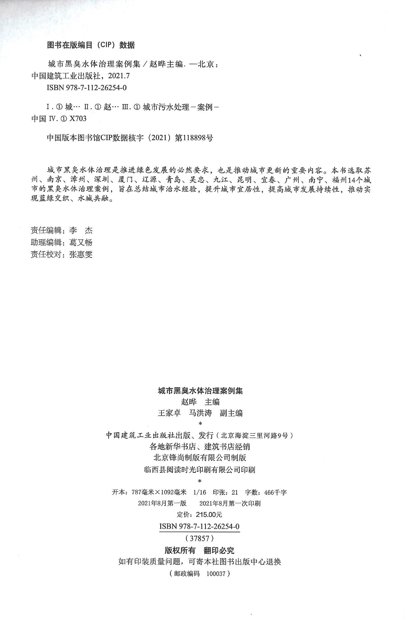 城市黑臭水体治理是推进绿色发展的必然要求,也是推动城市更新的重要内容。本书选取苏州、南京、漳州、深圳、厦门、辽源、青岛、吴忠、九江、昆明、宜春、广州、南宁、福州14个城市的黑臭水体治理案例,旨在总结城市治水经验,提升城市宜居性,提高城市发展持续性,推动实现蓝绿交织、水城共融。