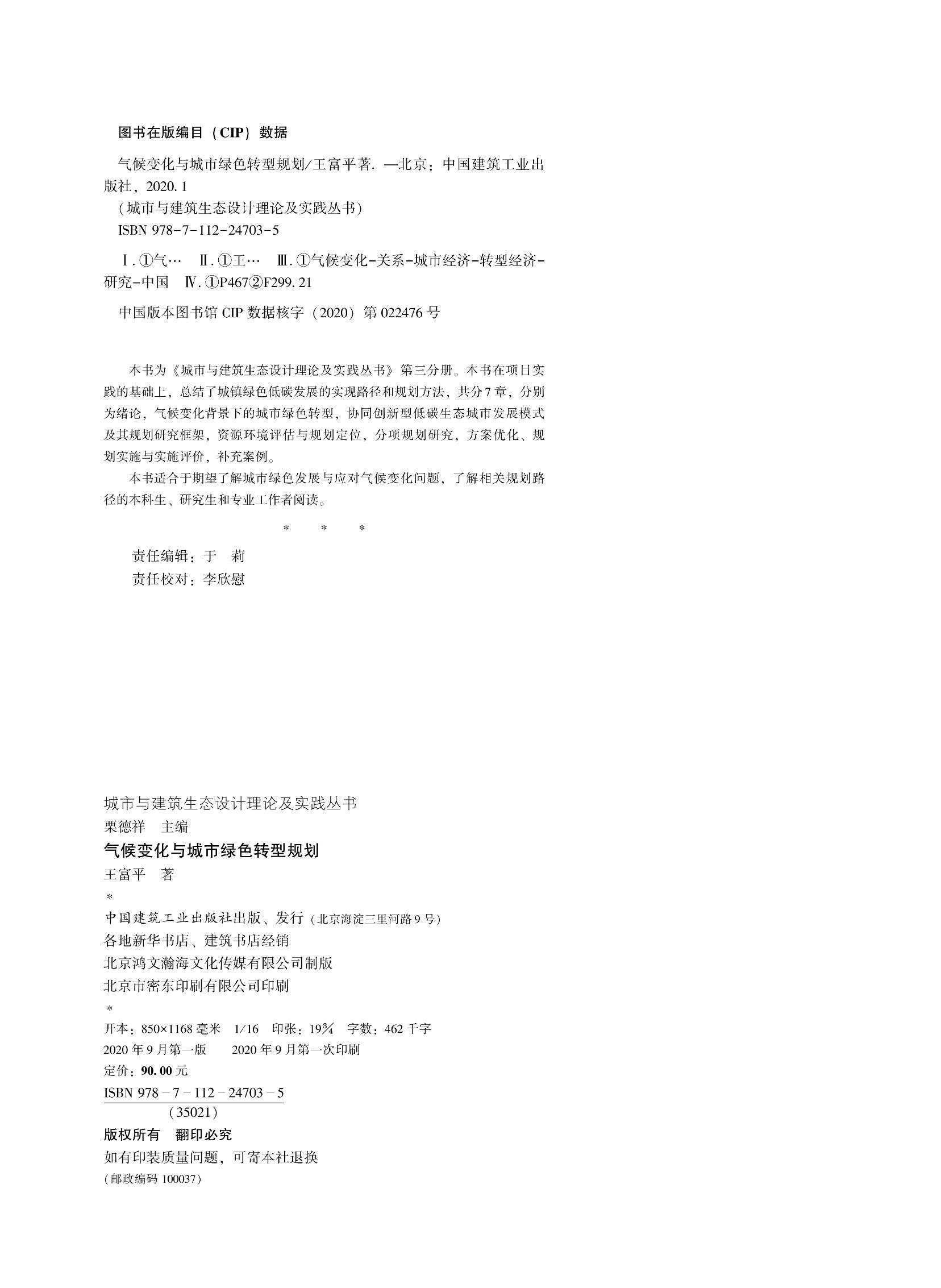 本书为《城市与建筑生态设计理论及实践丛书》第三分册。本书在项目实践的基础上,总结了城镇绿色低碳发展的实现路径和规划方法,共分7章,分别为:绪论、气候变化背景下的城市绿色转型、协同创新型低碳生态城市发展模式及其规划研究框架、资源环境评估与规划定位、分项规划研究、方案优化、规划实施与实施评价和补充案例。本书适合于期望了解城市绿色发展与应对气候变化问题,了解相关规划路径的本科生、研究生和专业工作者阅读。